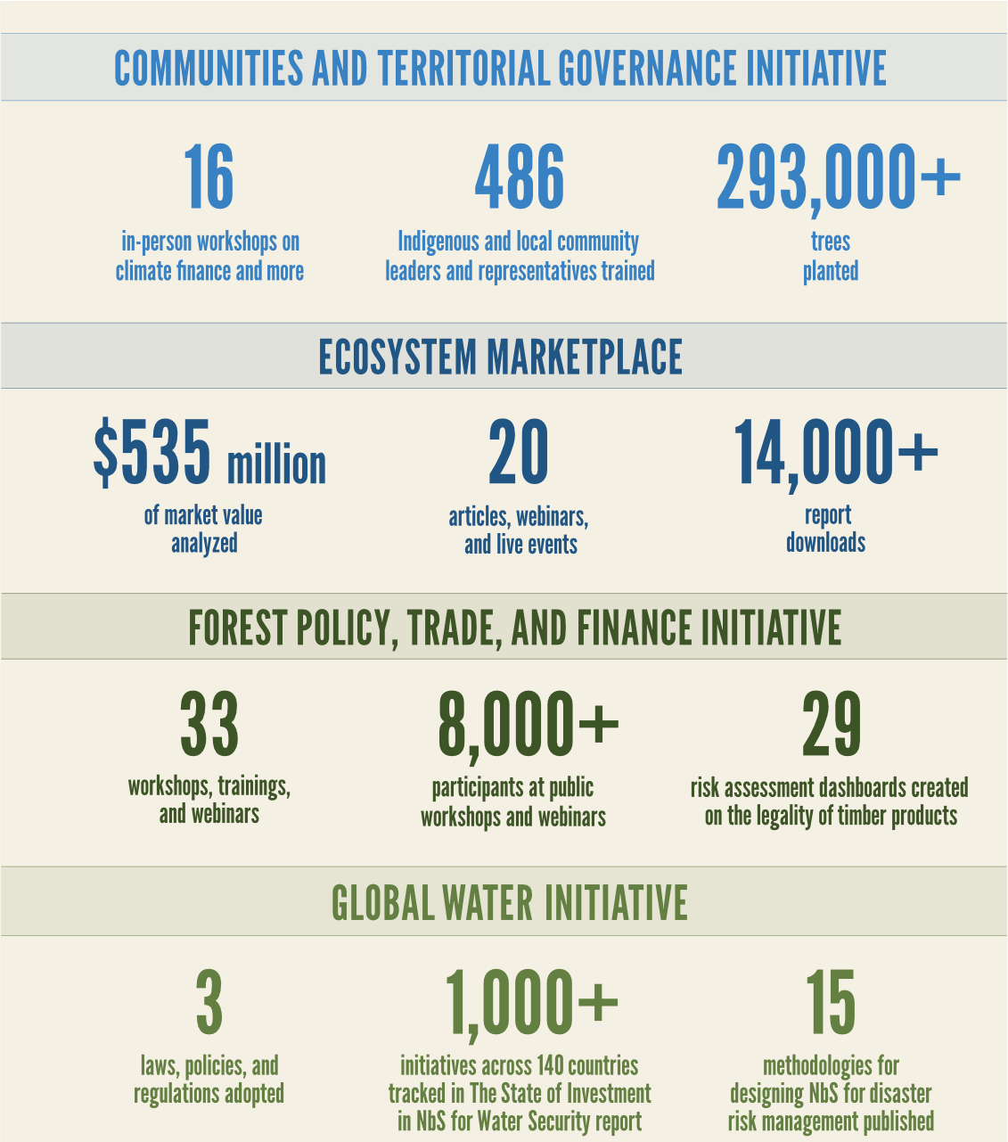 Forest Trends’ mission is to drive innovation in environmental finance to sustain resilient ecosystems and communities.