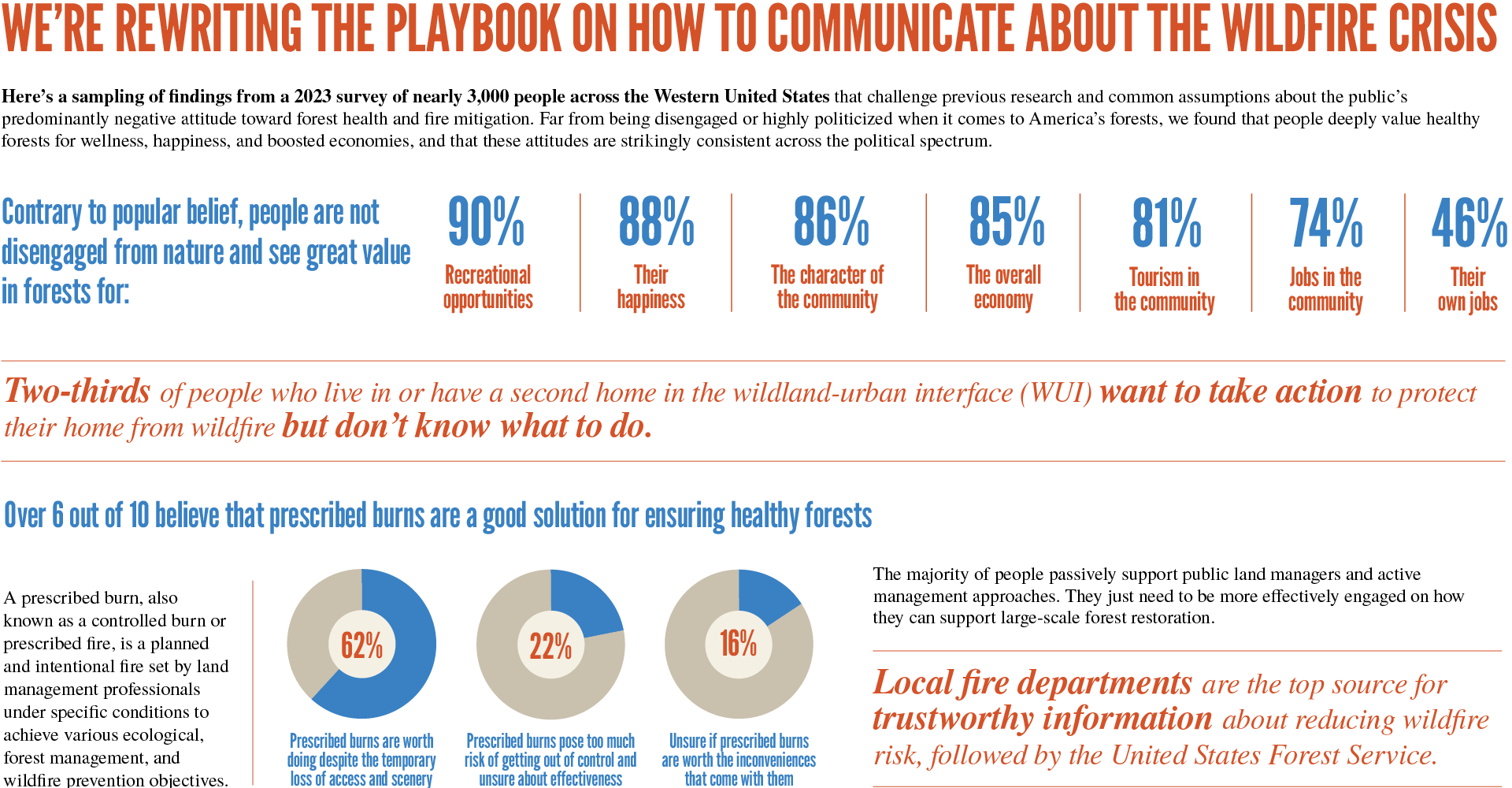 We also think there are a lot of actors who would like to be part of the solution to the wildfire crisis in the places where they live and do business, but they’re not being effectively engaged. A core goal of our work is to build diverse coalitions of public and private sector stakeholders who can drive impact on a far more meaningful scale.