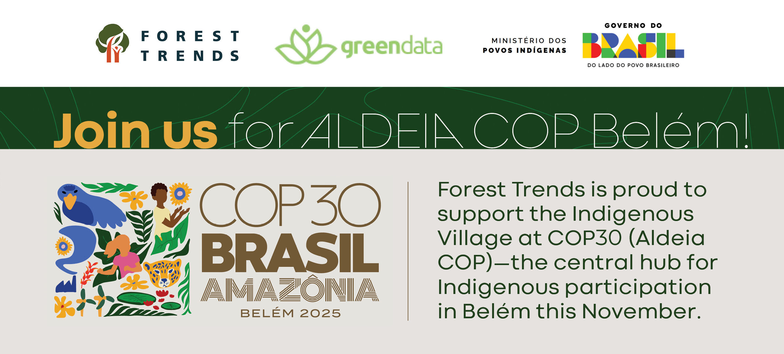 Join us for ALDEIA COP Belém! Forest Trends is proud to support the Indigenous Village at COP30 (Aldeia COP)—the central hub for Indigenous participation in Belém this November.