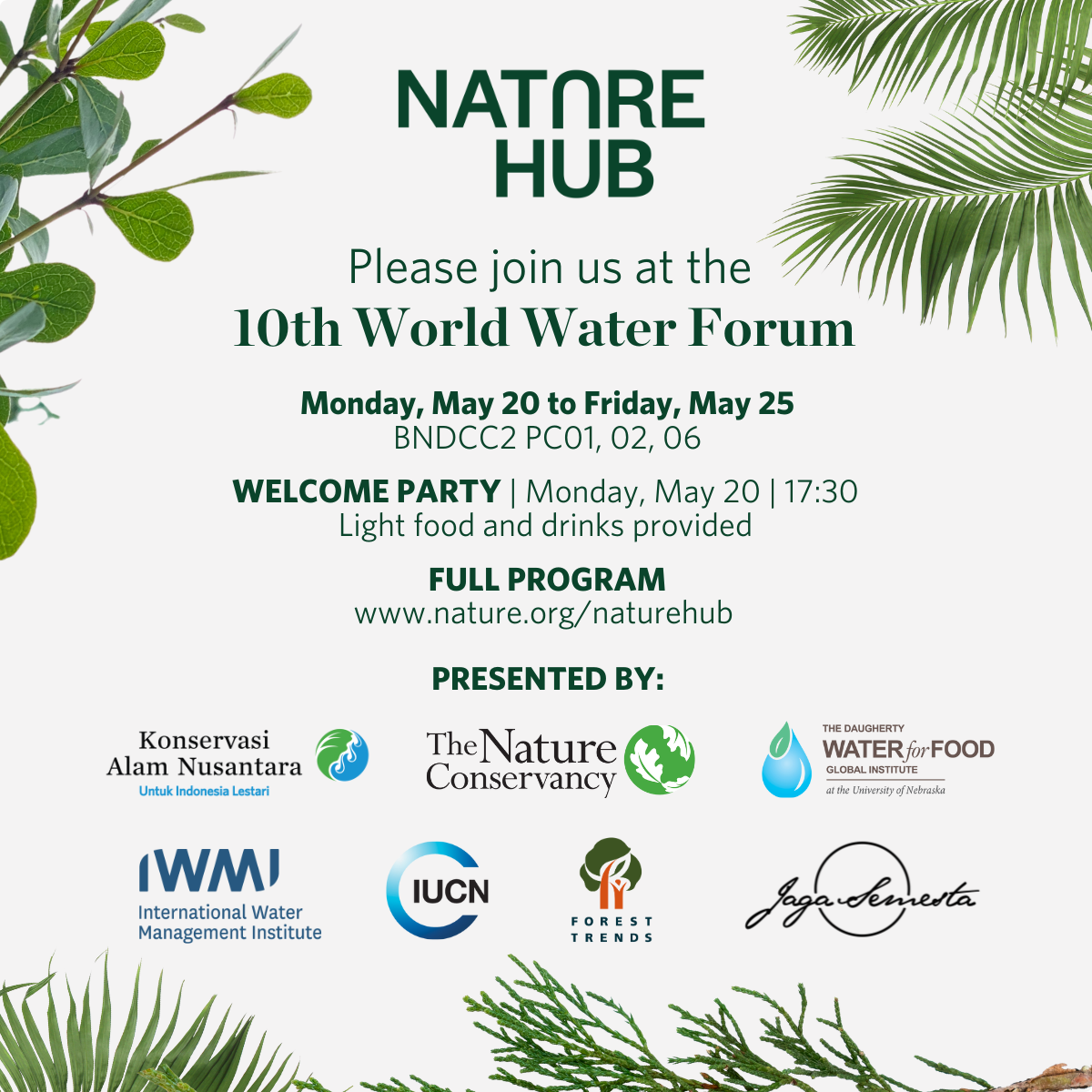 Sessions and social events will be held daily from 09:30 – 19:00. More detailed schedule coming soon. See the Nature Hub webpage here.