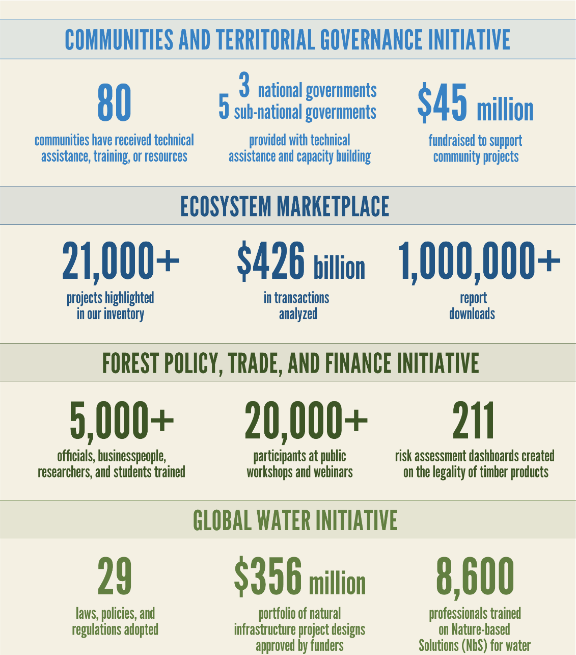 Forest Trends’ mission is to drive innovation in environmental finance to sustain resilient ecosystems and communities.